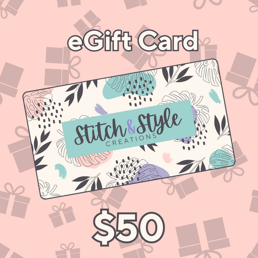 Discover the perfect gift for the creative souls in your life with the Stitch & Style Creations Gift Card. Whether they're seasoned crafters or aspiring artisans, these gift cards unlock a world of endless possibilities, allowing recipients to indulge in their passion for crafting and sewing.